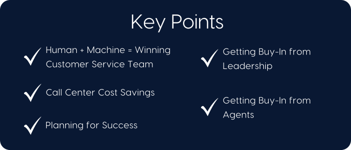 - Address agent concerns about job security and displacement. Focus on how AI will make them more effective and efficient.