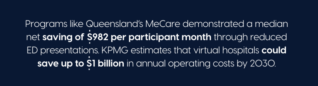 The economic case is further bolstered by programs like Queensland’s MeCare, which demonstrated a median net saving of $982 per participant month through reduced ED presentations. Additionally, the DCC provides the essential infrastructure for “Hospital-in-the-Home” and virtual care models. With KPMG estimating that virtual hospitals could save up to $1 billion in annual operating costs by 2030, the transition to a digital hub is no longer an optional upgrade. It is a strategic imperative for any Australian healthcare provider aiming to deliver high-quality, sustainable care in a digital-first era.