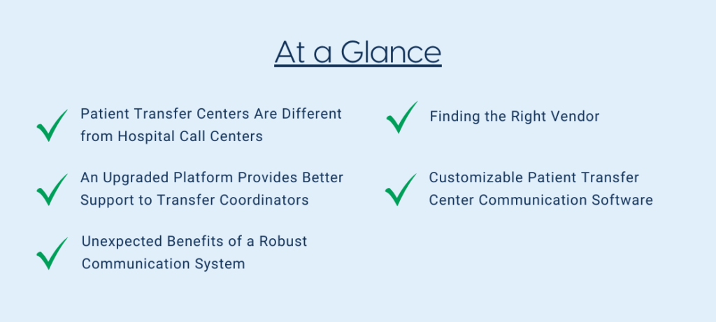 Patient Transfer Centers Are Different from Hospital Call Centers
