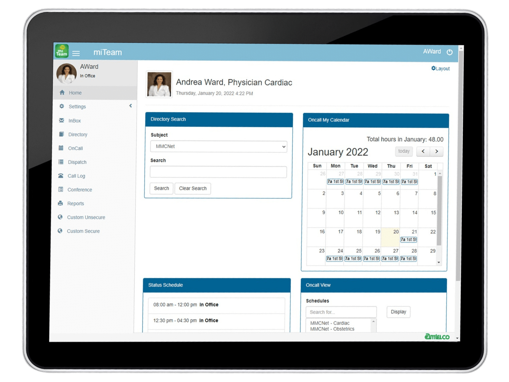 Healthcare providers often work in various locations and need access to information on the go. Amtelco Secure Messages, with integrated on-call scheduling, is accessible from any device, ensuring that staff can access critical information wherever they are. Staff members who need remote access to their schedule could do so via the Amtelco Secure Messages app or miTeamWeb.
