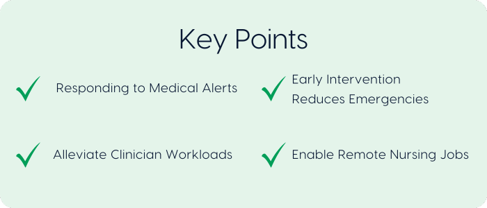 Clinical contact centers help medical providers monitor and respond to the remote data that is collected. One way they do this is by distributing medical alerts to the doctors on-call. For example, if a patient at high risk of a cardiac event experiences an adverse change in vital signs, their wearable heart rate monitor sends an alert to the contact center. Depending on the nature of the alert, the nurse on-call could simply call the patient, contact the patient’s cardiologist, or dispatch paramedics to the patient’s location.