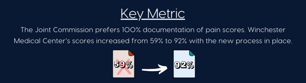 Winchester Medical Center quickly discovered what an effective process this was. When several departments didn’t copy the schedules for the nurses covering the patient rooms, the scores went down, giving them a way to prove that the pain pathway process was working.