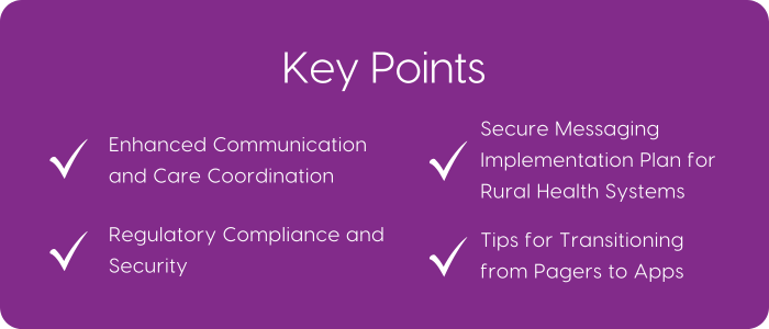 The transition from pagers to secure messaging apps is an important step for rural health systems to enhance patient safety, efficiency, and HIPAA compliance. However, these organizations often face unique challenges, particularly financial constraints and limited IT resources.